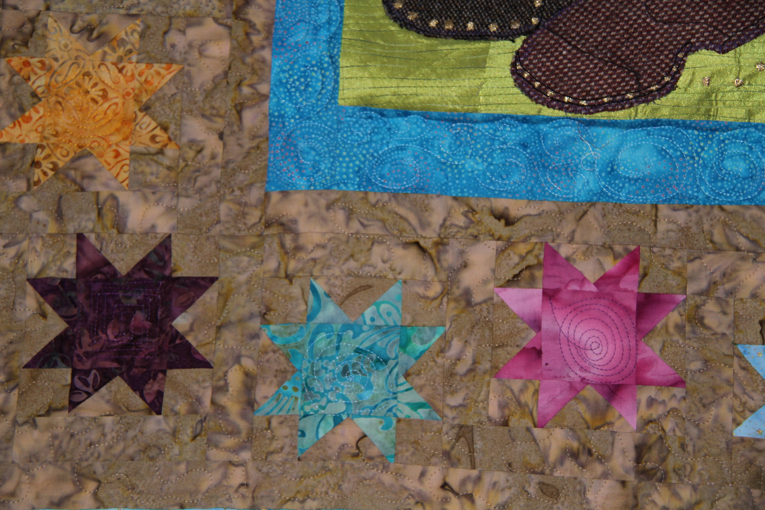 Wall hanging November 5, 2015November 5, 2015 | bunysanders I have been very busy piecing and quilting a wall hanging for an artist in the highlands of Scotland. The quilt will be shown on the 14th of November so I can only show you a sneak preview for now. I will post the whole quilt after the unveiling. Share this: Click to share on X (Opens in new window) X Click to share on Facebook (Opens in new window) Facebook Like Loading...