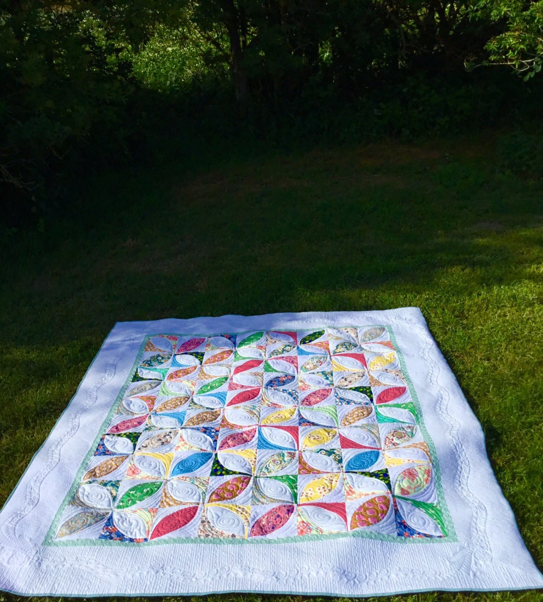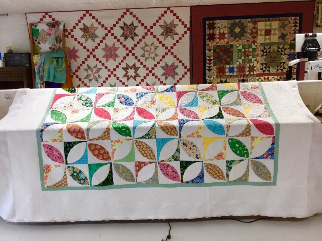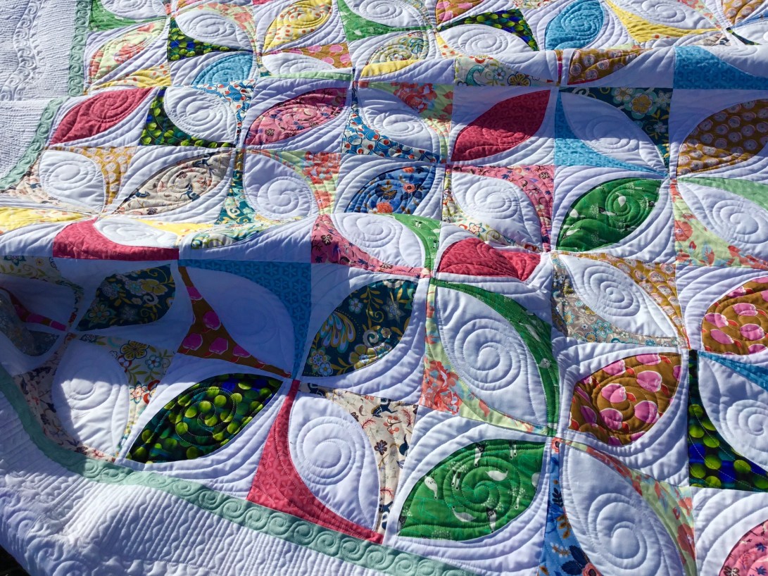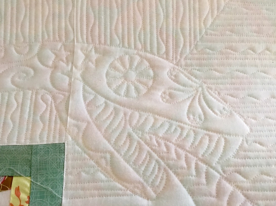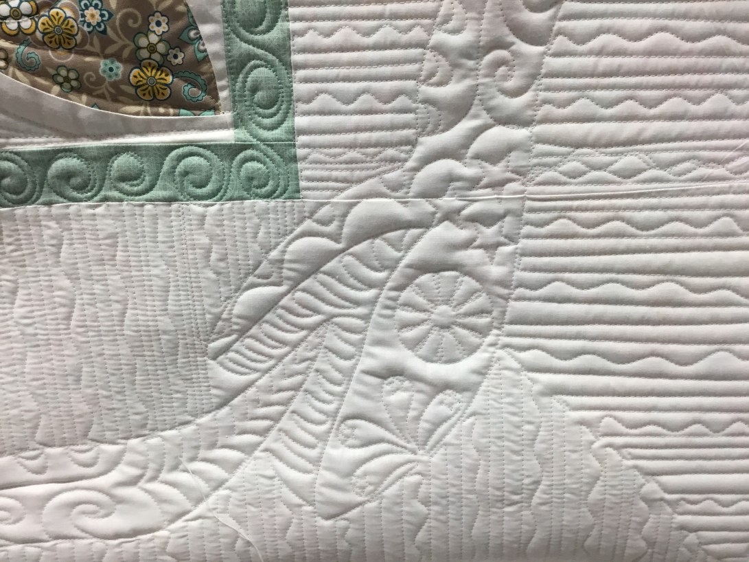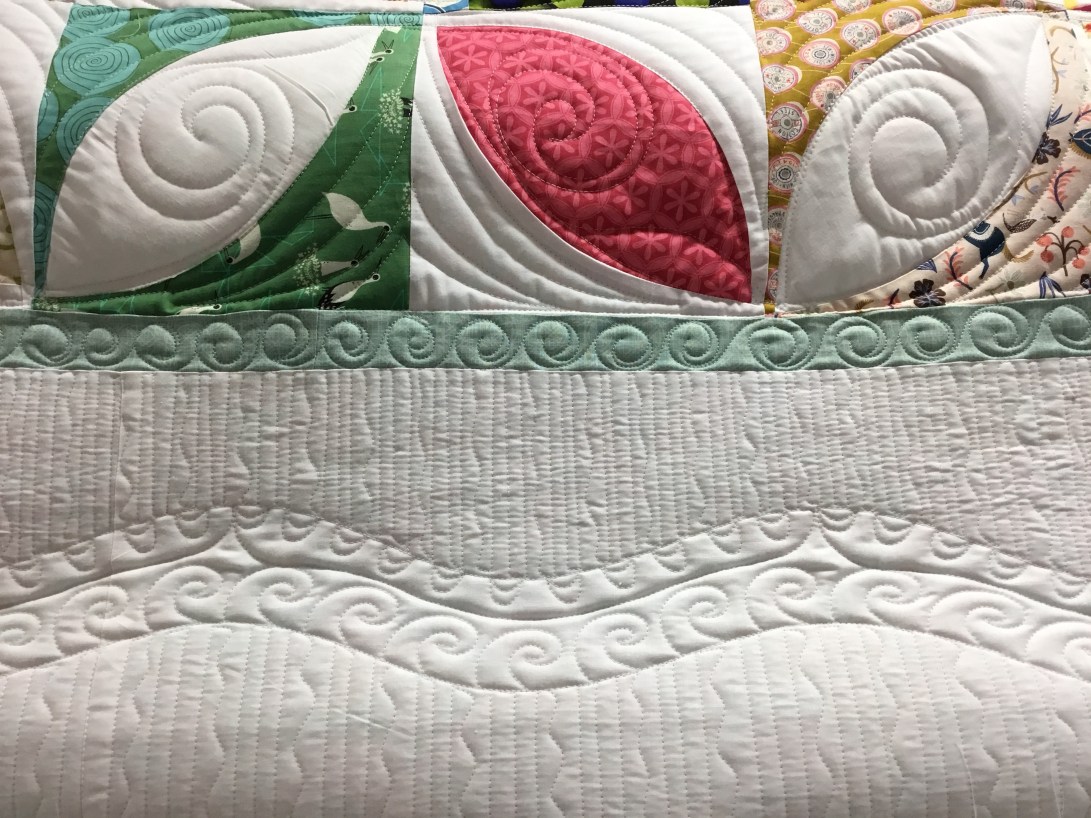 Then on the centre of the quilt I filled it up with swirls and lines.