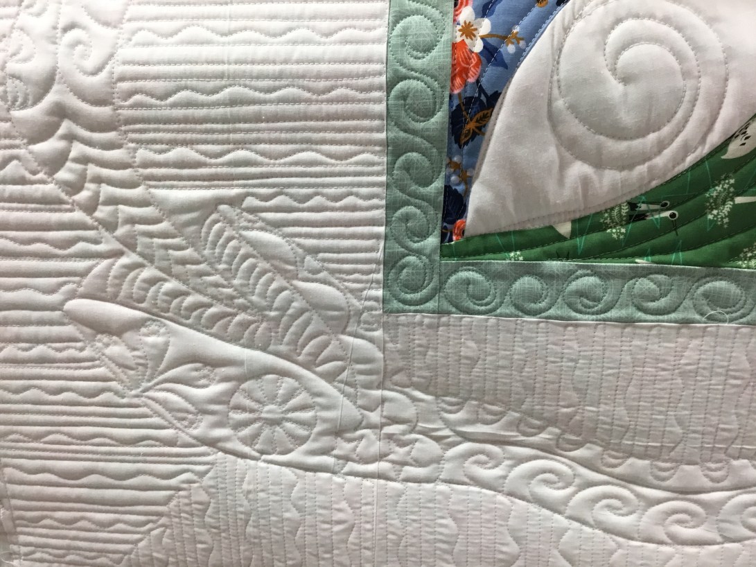 Then on the centre of the quilt I filled it up with swirls and lines.