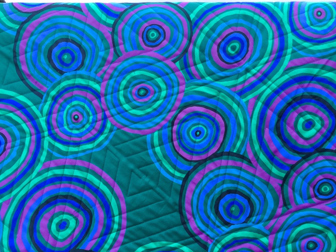 What a great choice of backing fabric, very simple quilting was asked for as complex quilting on a colorful quilt like this would be lost on it, I love the simple straight triangles .
