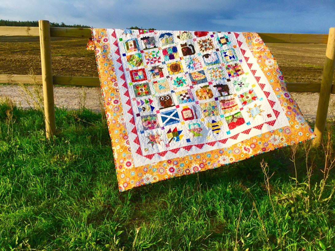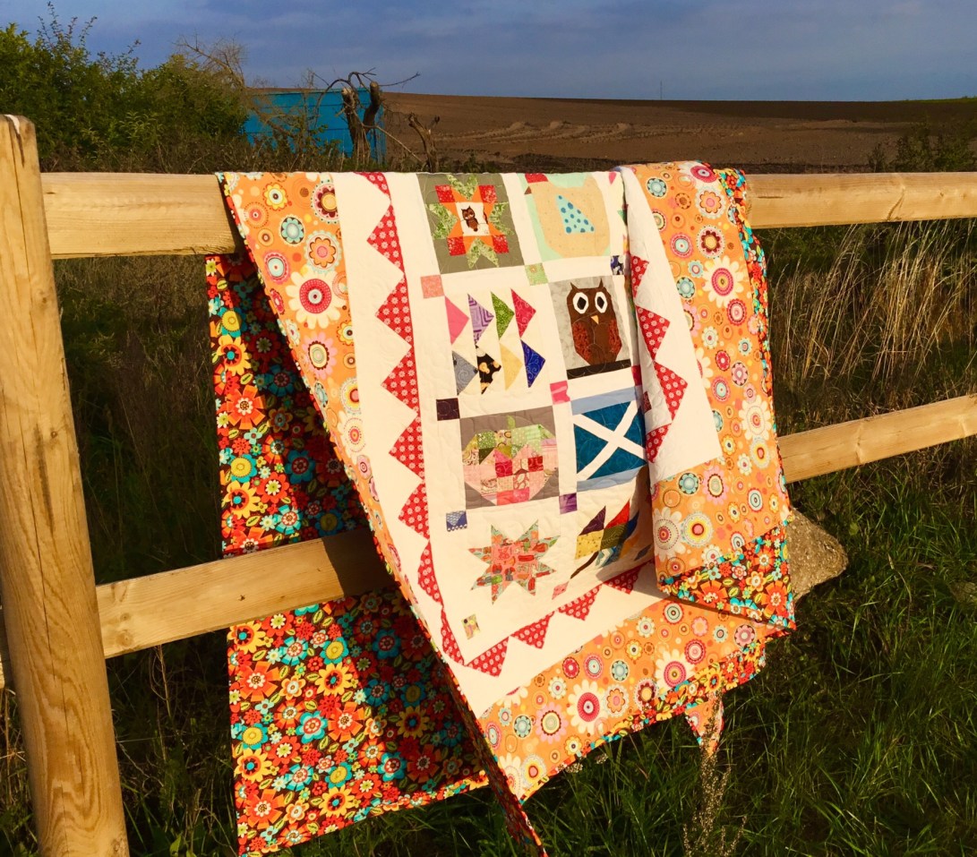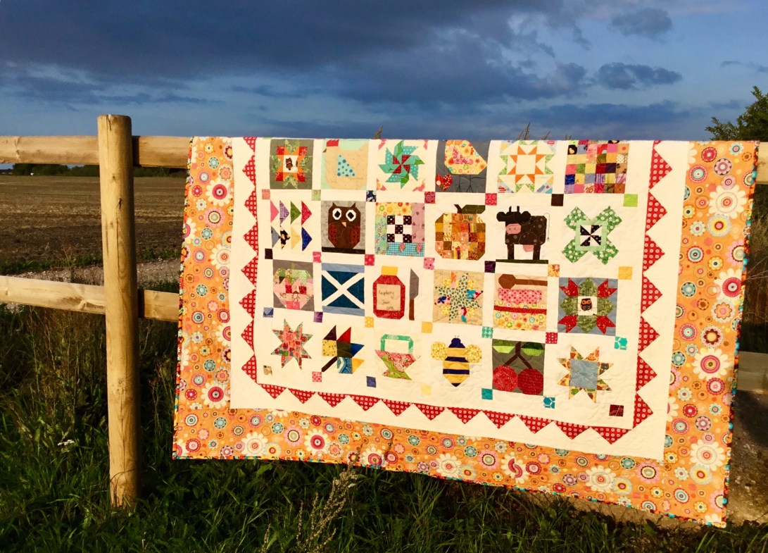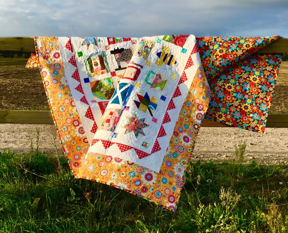 A couple of years ago I made my mother a Farm Girl quilt and at the same time made an extra block of each one for myself, Mum’s was finished ages ago and she uses it as her summer quilt but mine is only just completed but I like that we now both have the same quilt on our beds in the summer, as she lives in Scotland and I don’t see as much of her as I would like.
