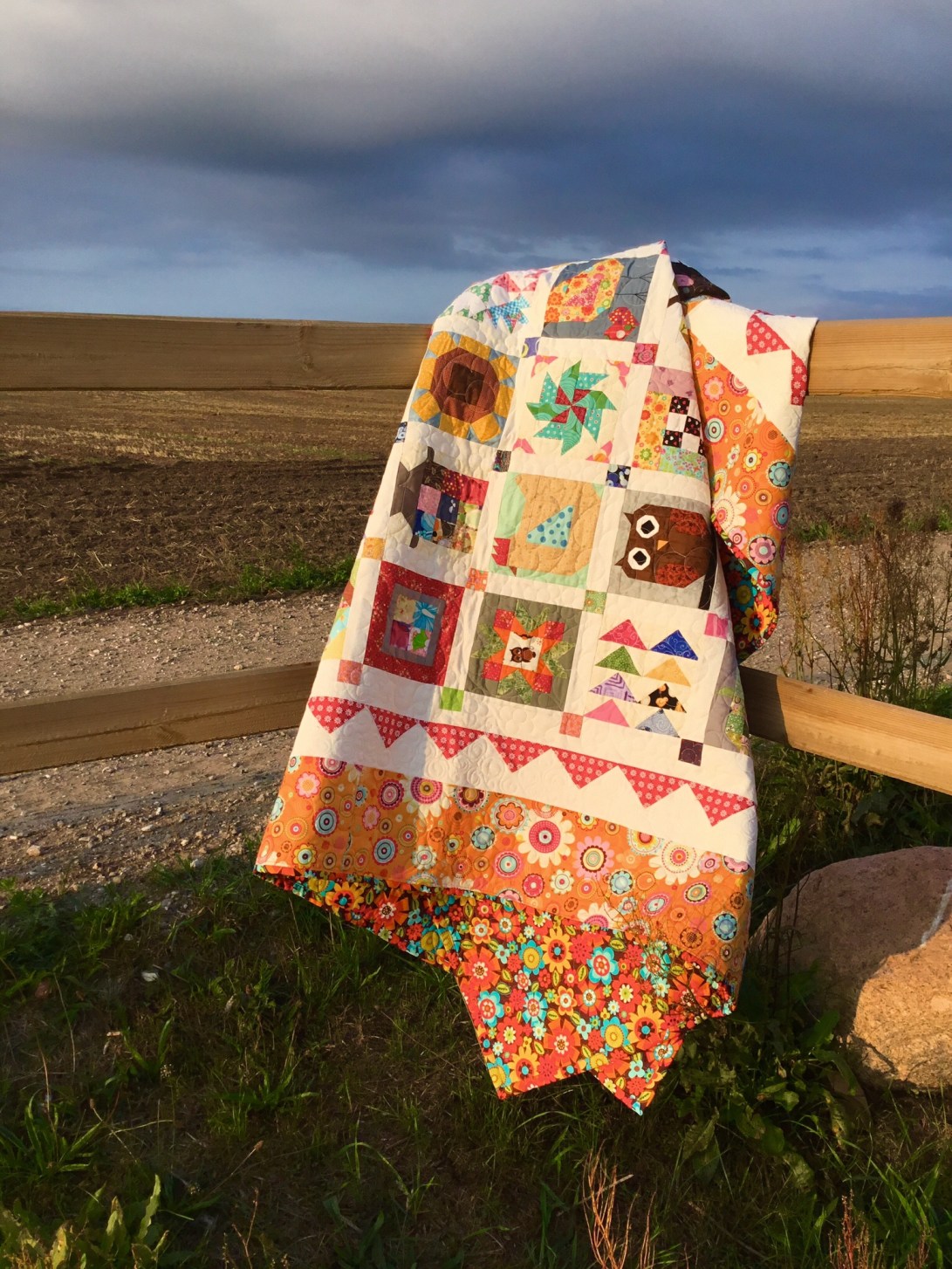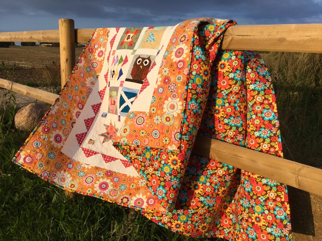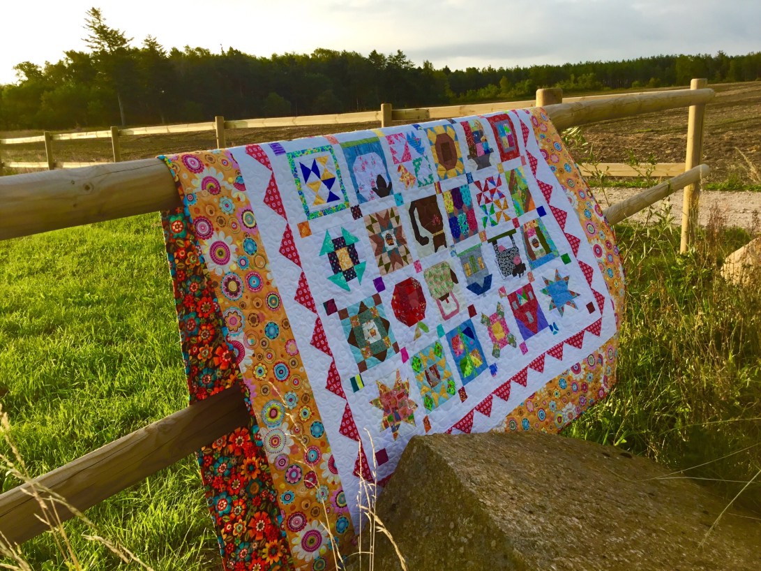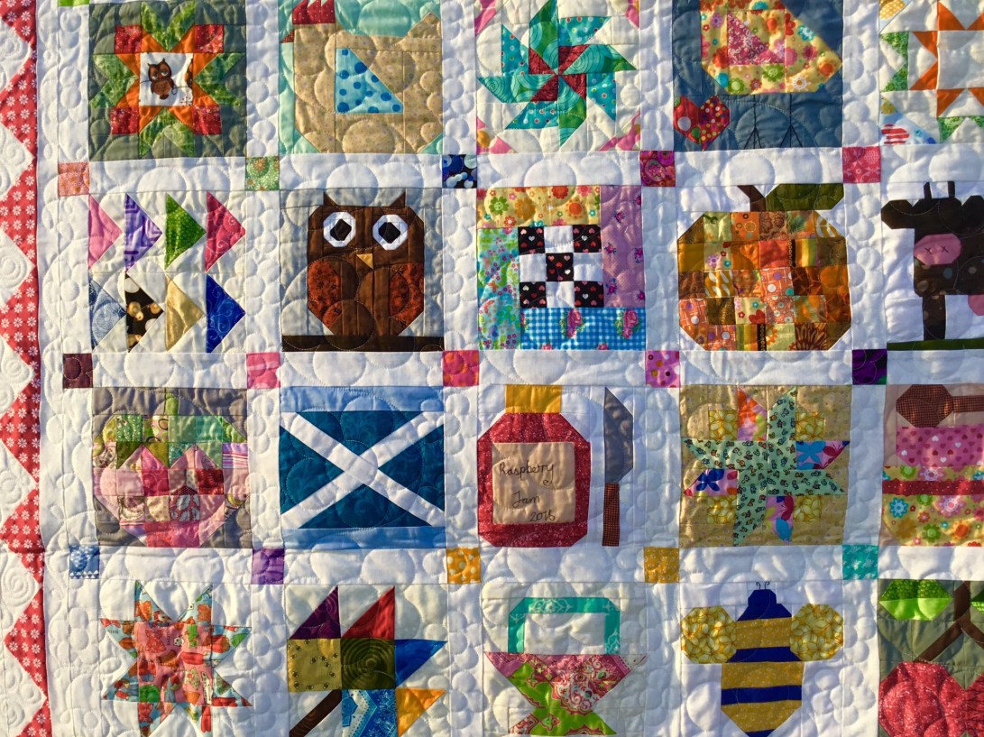 A couple of years ago I made my mother a Farm Girl quilt and at the same time made an extra block of each one for myself, Mum’s was finished ages ago and she uses it as her summer quilt but mine is only just completed but I like that we now both have the same quilt on our beds in the summer, as she lives in Scotland and I don’t see as much of her as I would like.