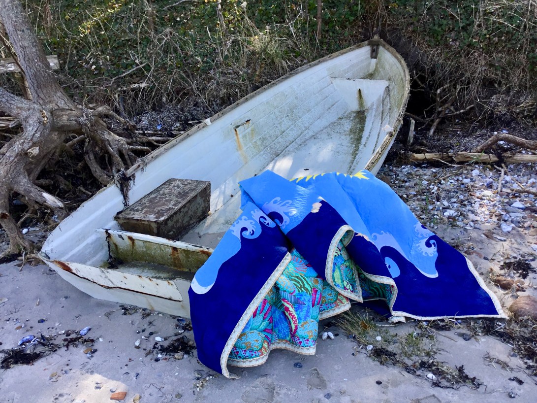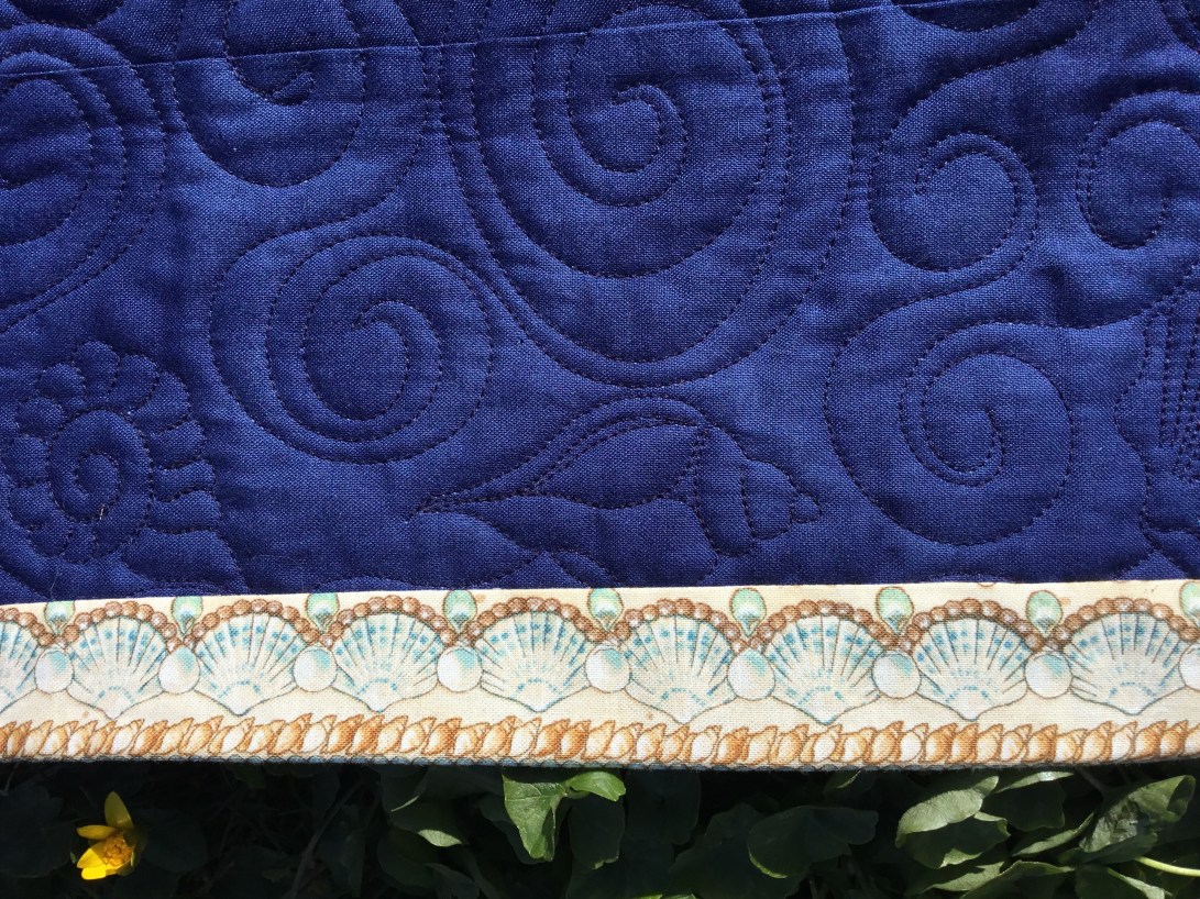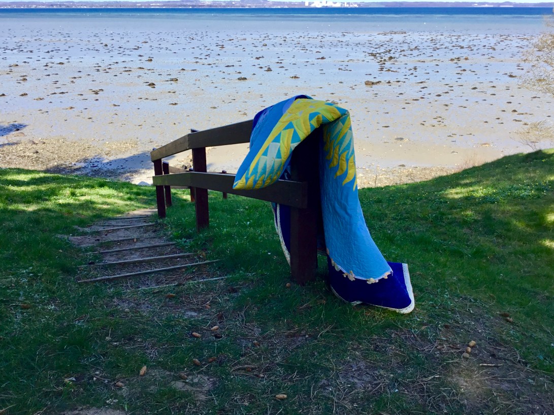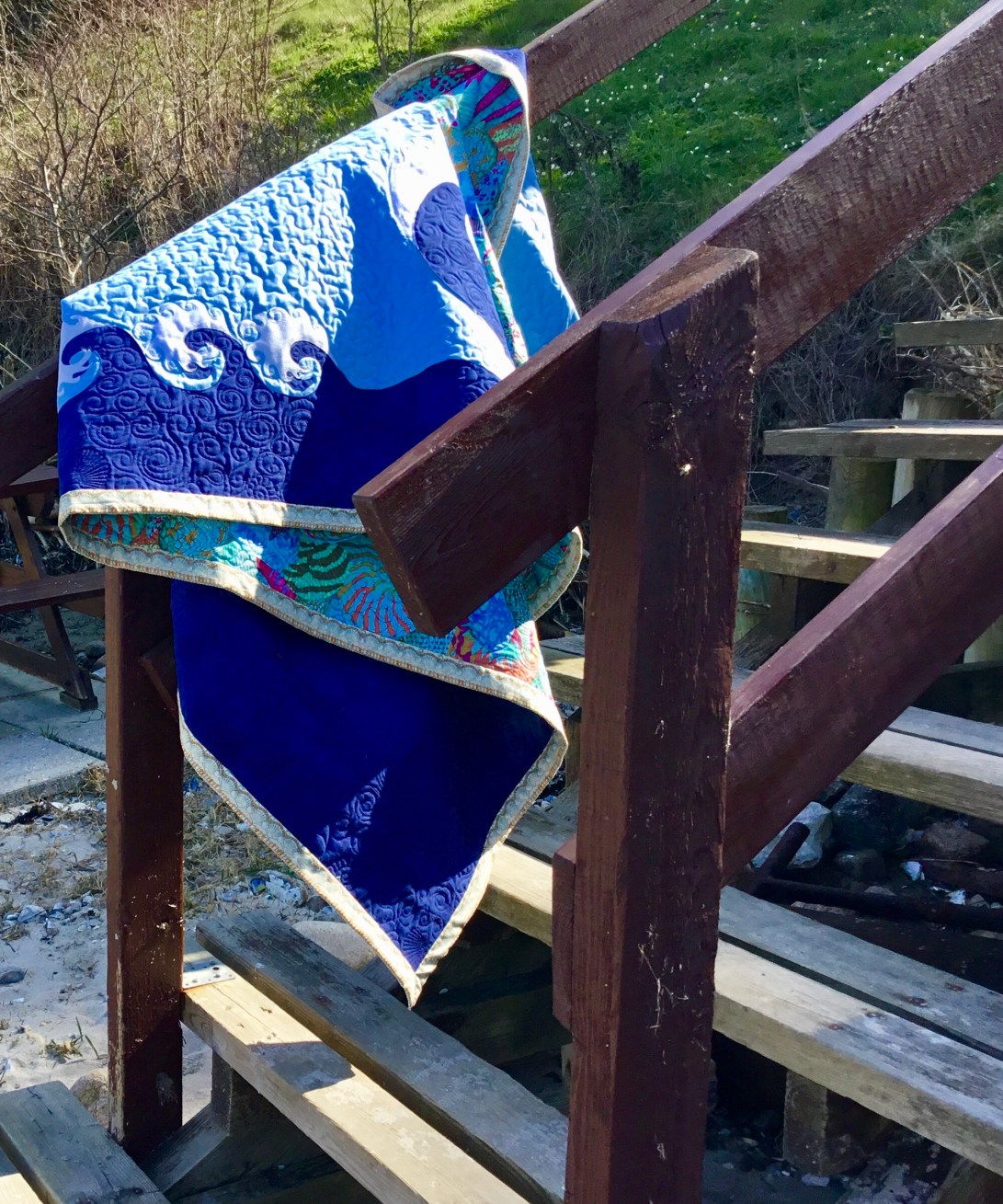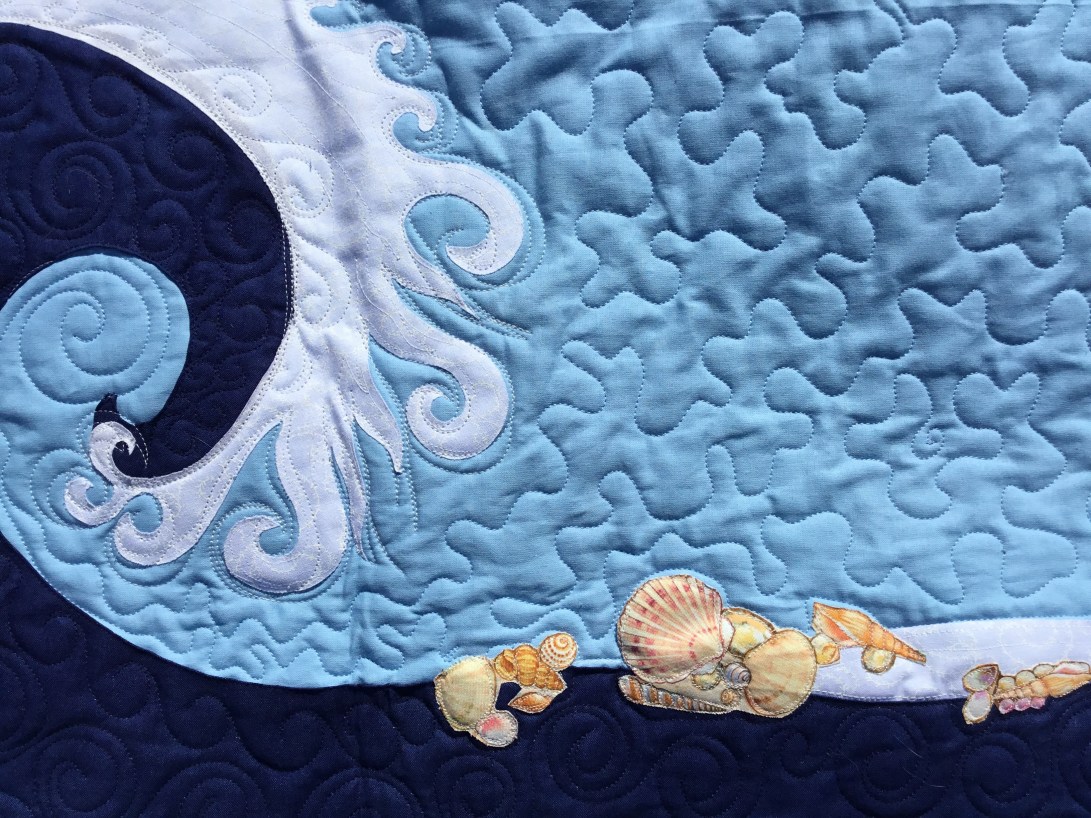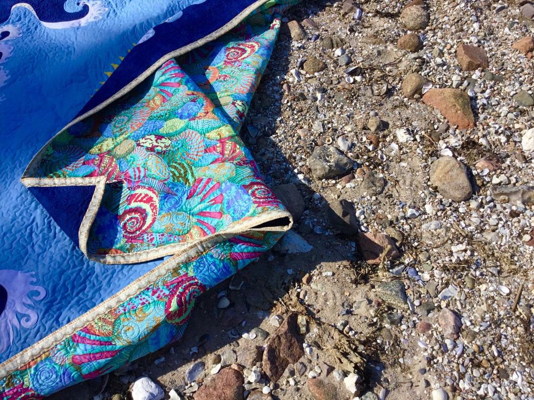 Michael’s summer Mols beach quilt designed by Michael, made by me! The central paper pieced mariners compass has 64 points! The outer waves are hand appliqué and machine appliqué, there shells all over it, in the quilting on the binding and appliquéd on to it. its tough enough for beach use and soft enough to cuddle up with round a beach fire🔥later in the evening.😃🌼😊🇩🇰