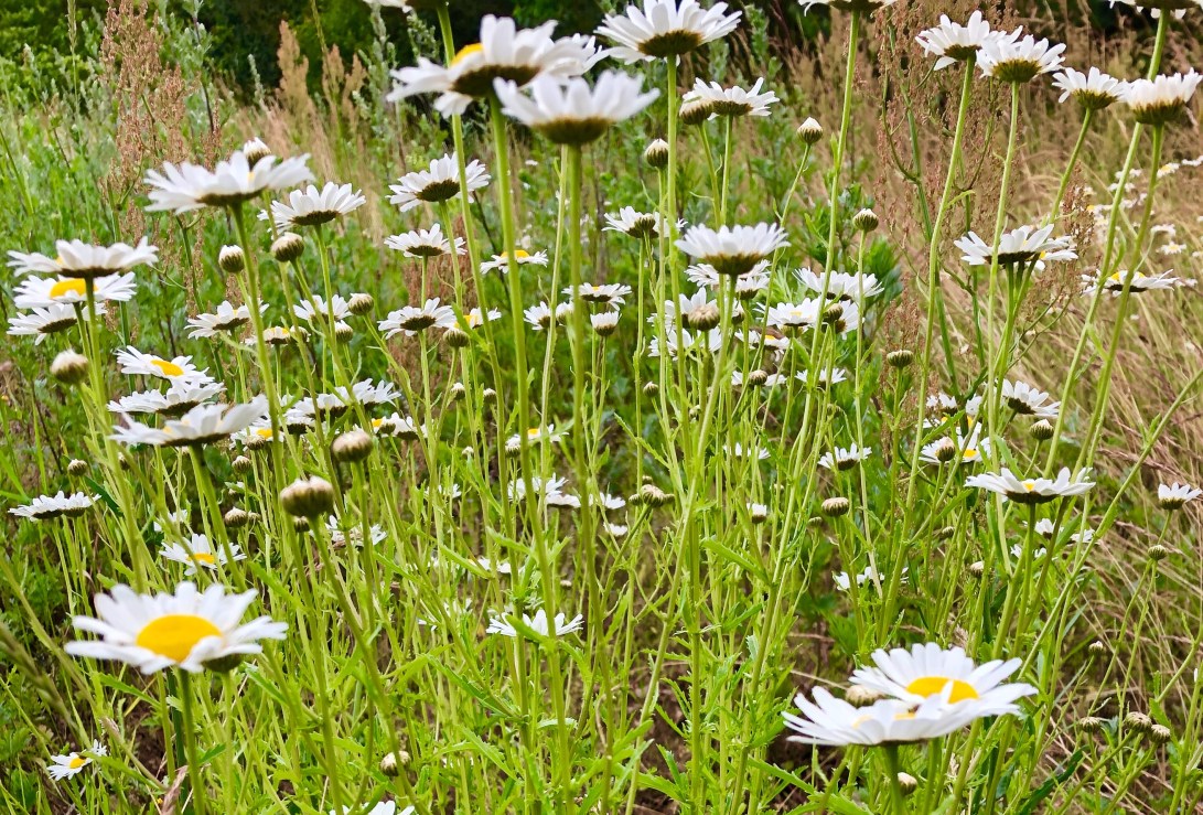 Denmark is literally awash with wildflowers, no matter where you walk, inland or on the coast, they are there in abundance. When I walk here it is impossible to be in a hurry, I keep stopping to admire or smell the flowers, curious as the their danish name, or to watch the birds and insects busy about their daily chores in, on and around the flowers, sometimes I come across a hare or some deer, both run like the wind when they see me but usually if I sit still long enough they forget I am there and take no notice.