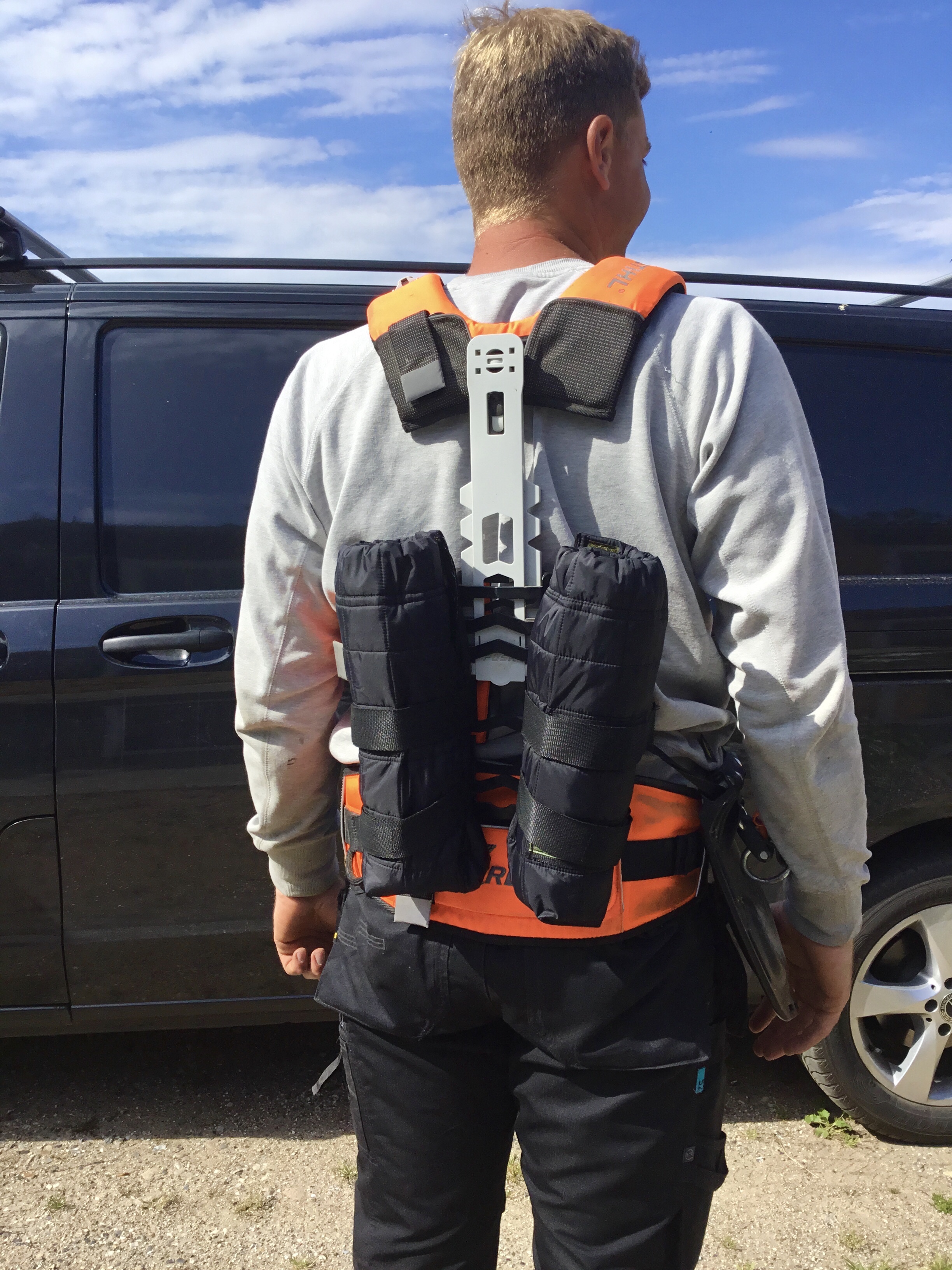 I sewed strong canvas straps to them with adjustable Velcro closes and attached them to the backpack.