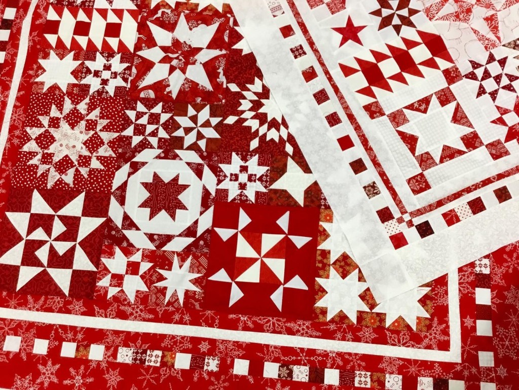 Karen’s fabulous stars! Hanne Allen’s friend from Germany sent me this stunning quilt to have some quilting fun with, I quilted each colour star with a different design and thread colour, and did a simple stipple design on the black background to keep the quilt super soft.