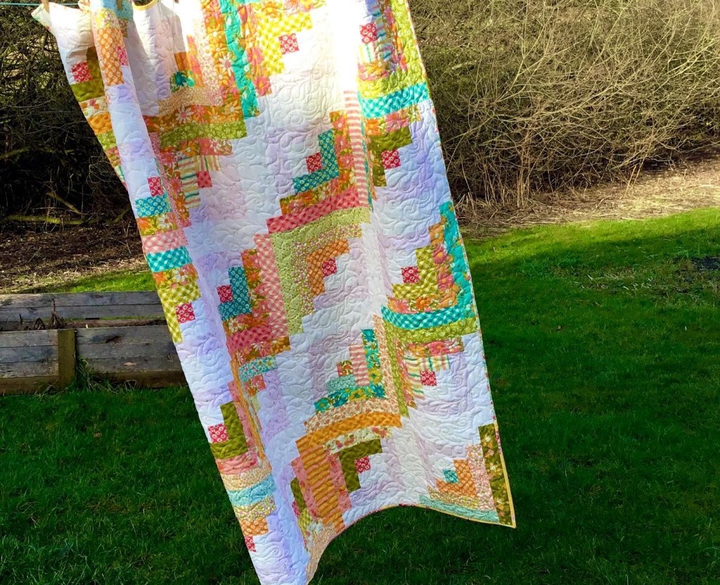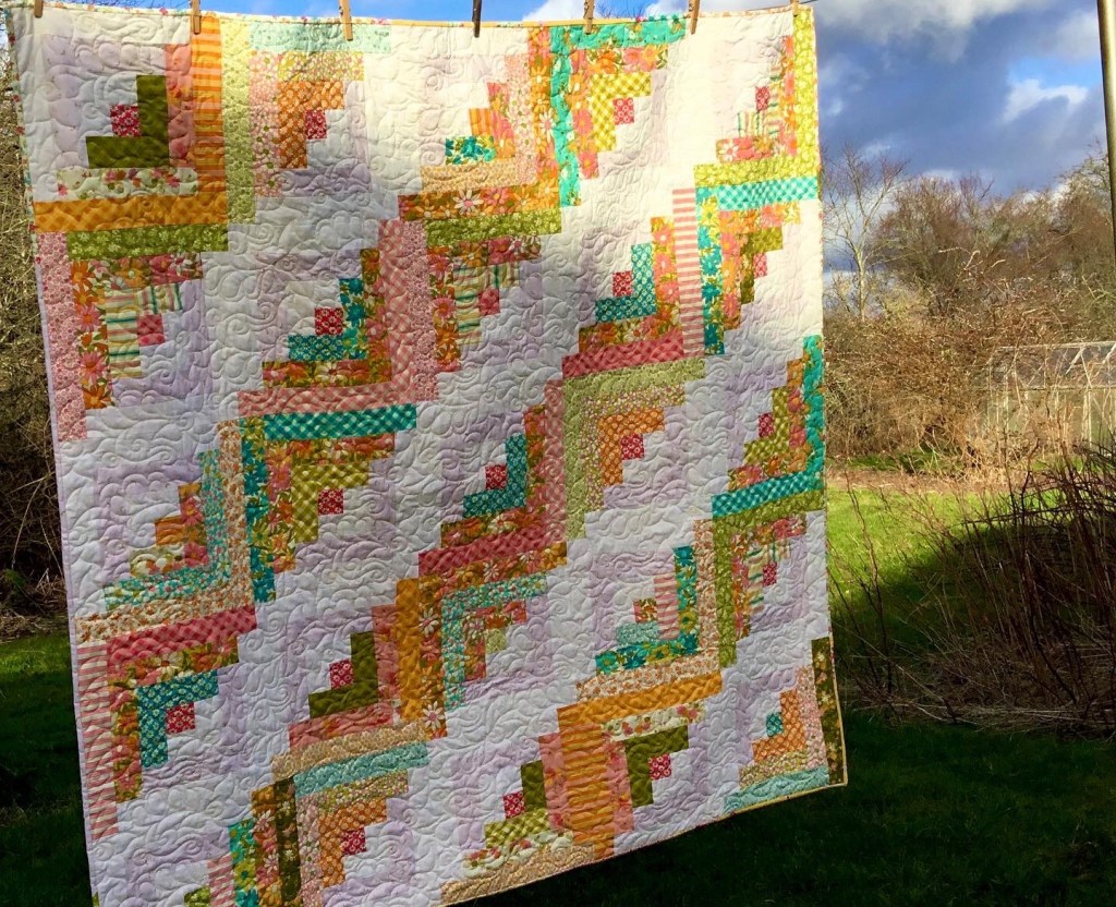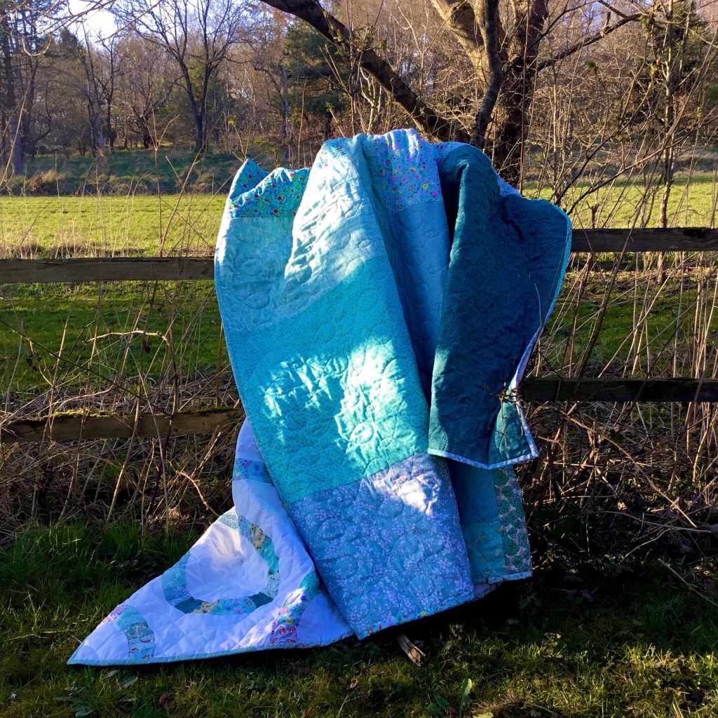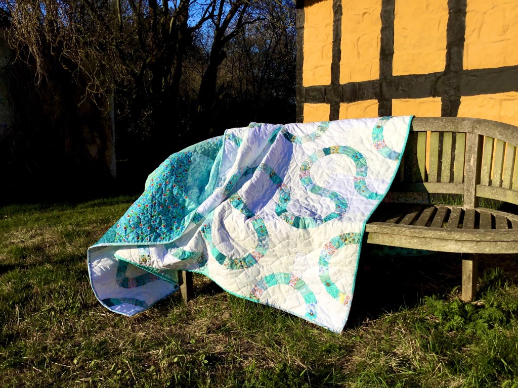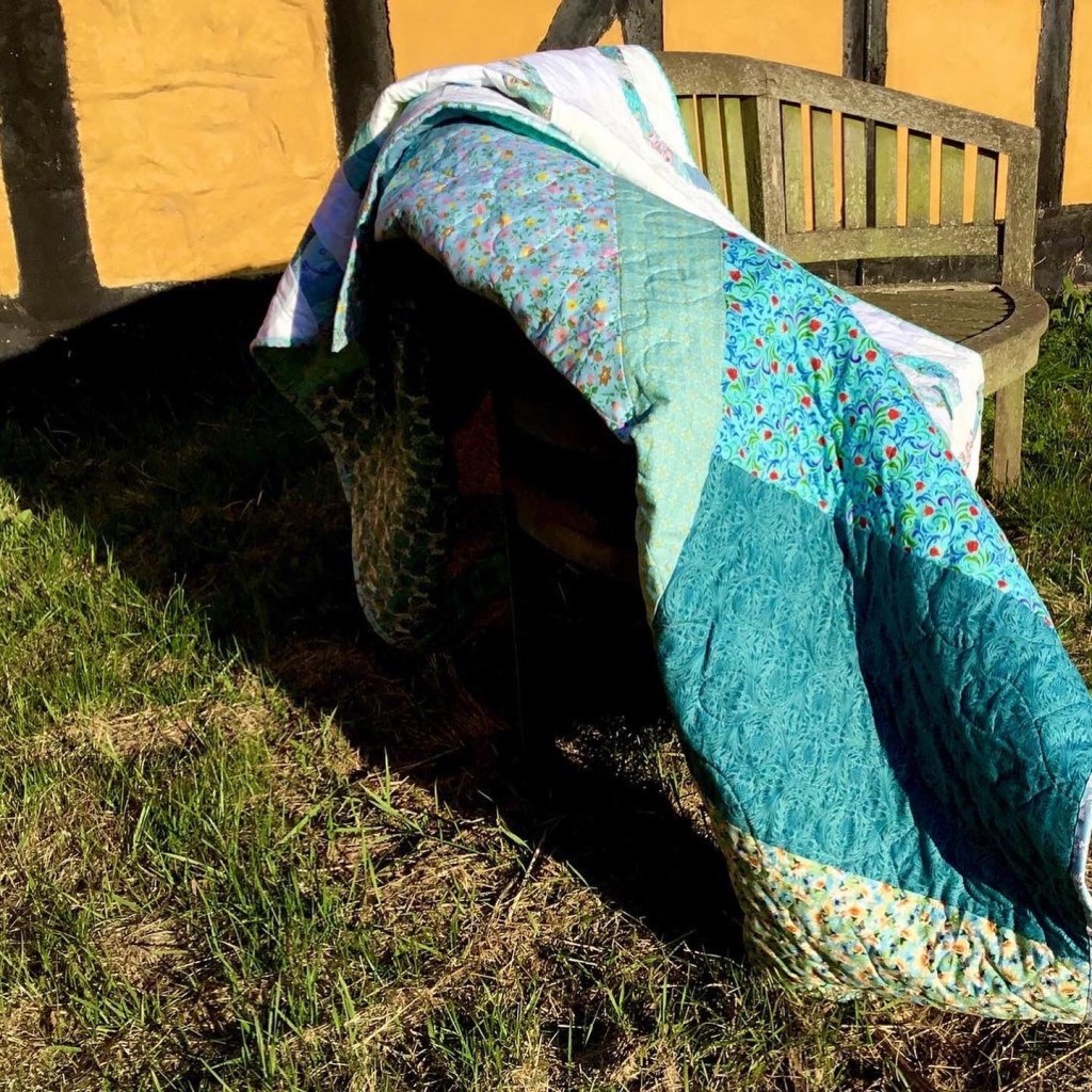 Grethe, der aldrig har lavet patchwork før, blev færdig med sin første quilt efter 6 ugers kursus hos DaisyQuiltsForYou.Det er så fantastisk, og farverne er perfekte!