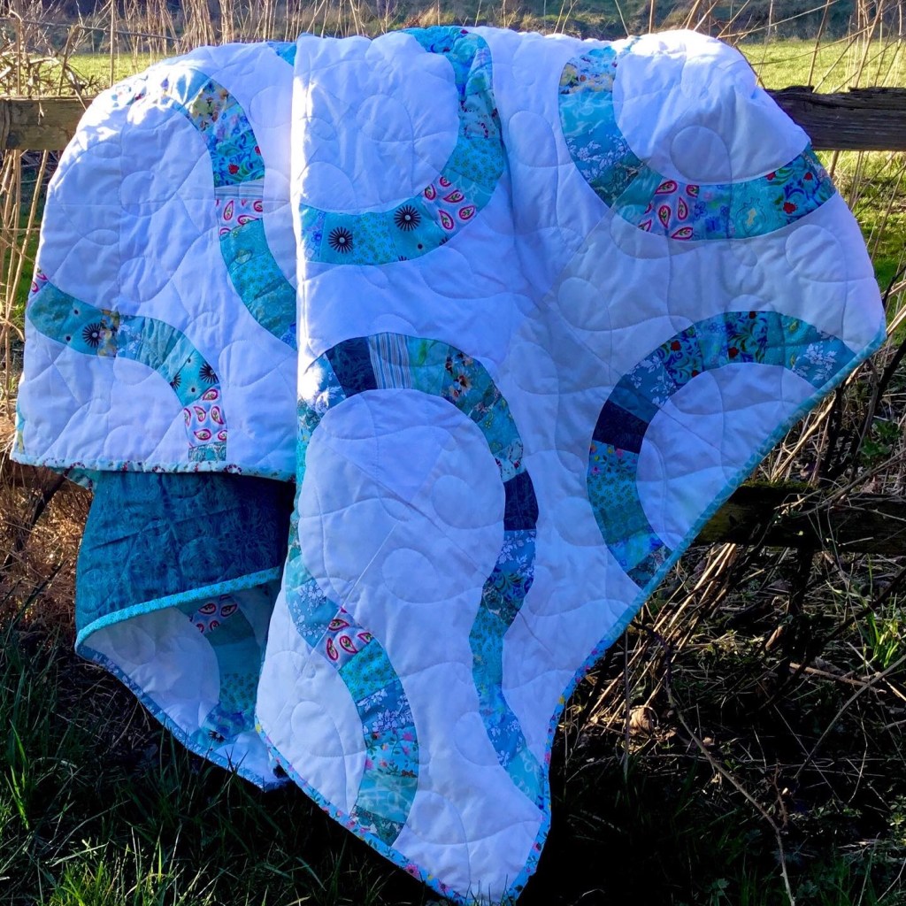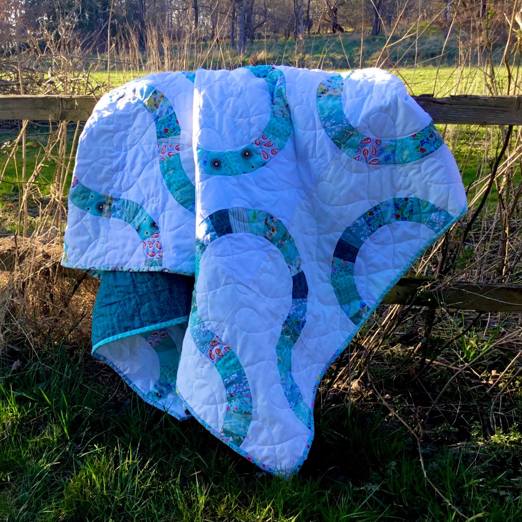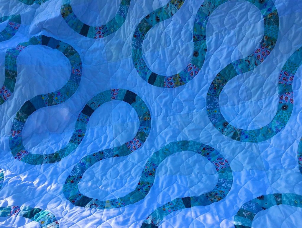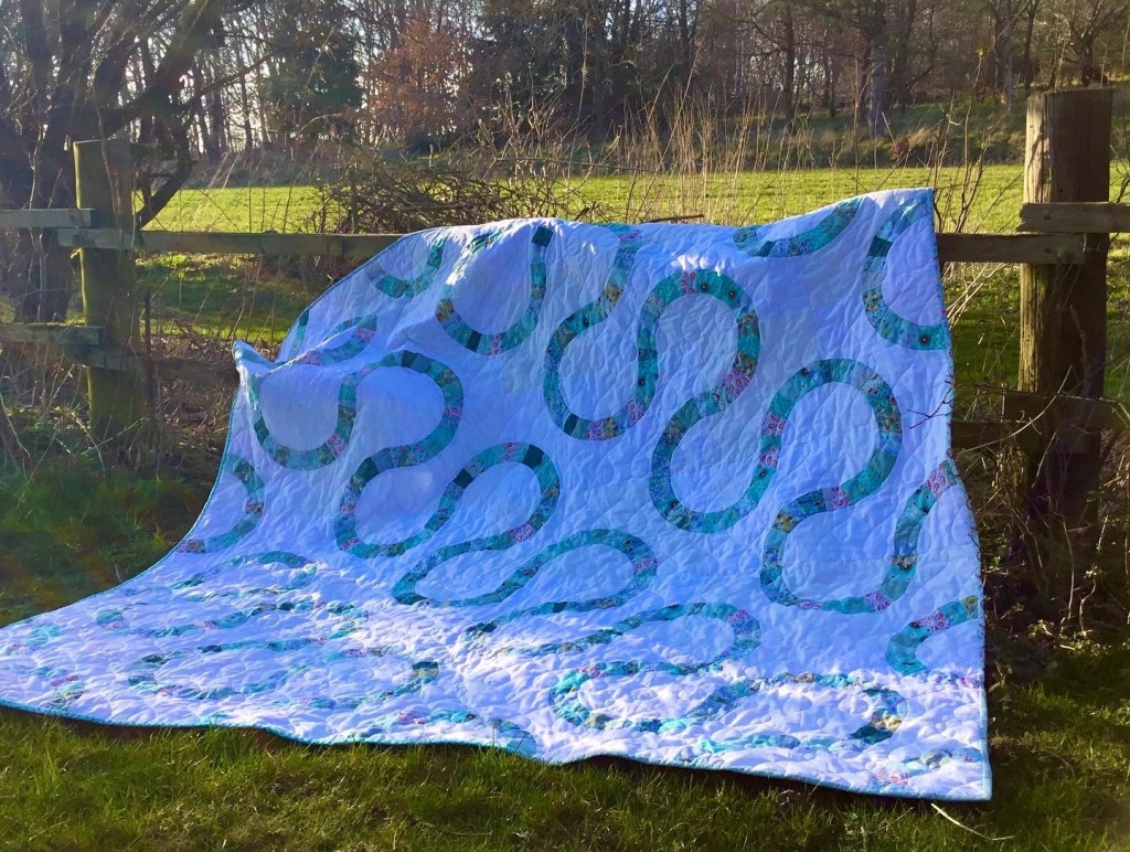 Super easy curved piecing 🐍🐍🐍Meget enkel E2E pantografquiltning med hvid poly/bomuldsgarn og 100 % bomuldsbrillant hvidt batting.Very simple E2E pantograph quilting using white poly/cotton thread and 100% cotton brilliant white batting.