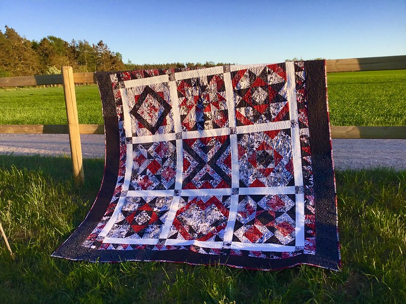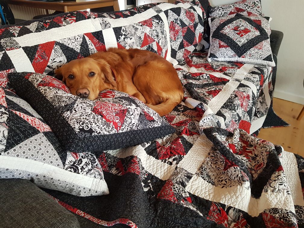 Thomas and Wendy latest addition to their collection of quilts, what’s black and white and red all over, why this gorgeous twin size quilt of course! This quilt was pieced and quilted my myself and I am super happy it is going to a wonderful new home here in Denmark.Perfect❤️❤️❤️