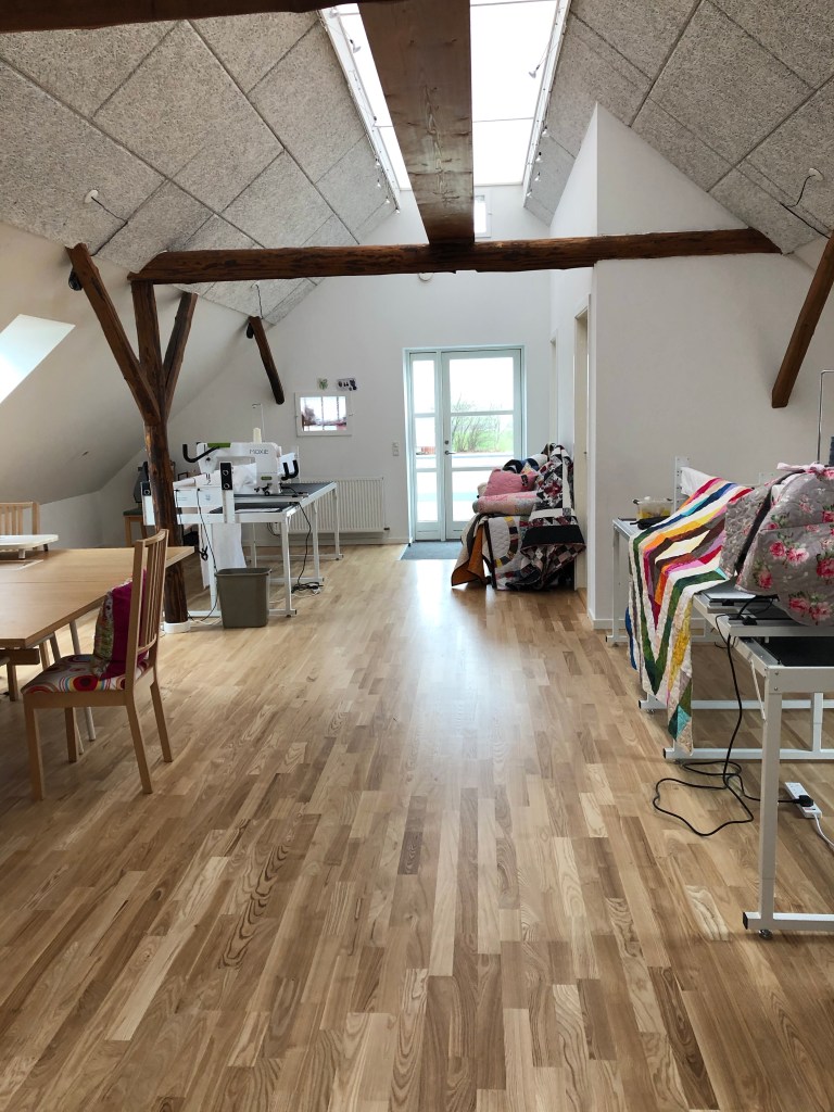 for information how you can learn to “Quilt It Yourself!” All fabrics used are from Helene Juul’s fabulous fabulous fabric store in Kolt. You’re first stop in shopping for quilting fabrics, patterns, books, accessories and so much more! Also go check out her online store.