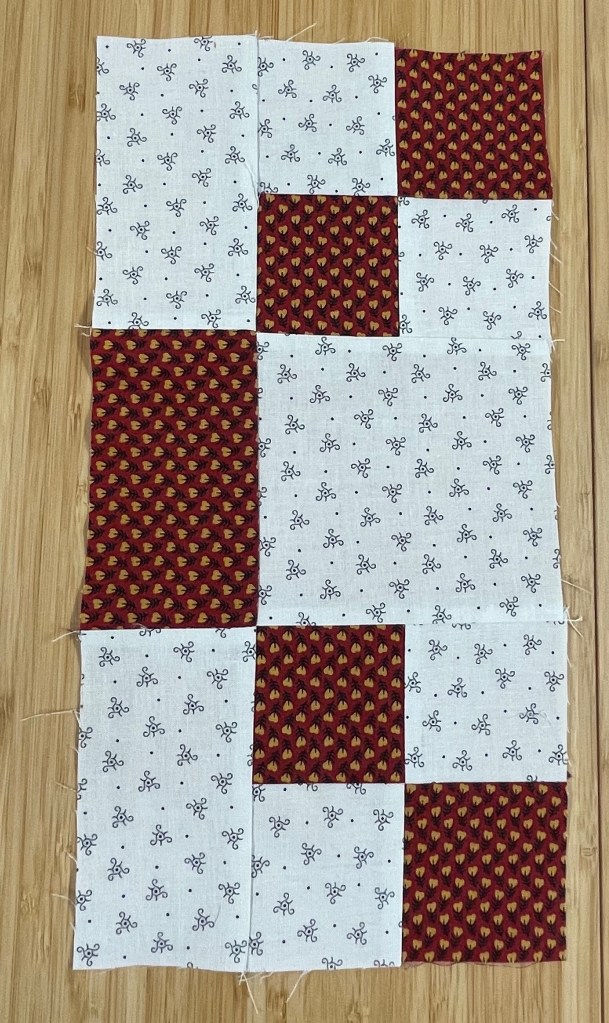 Klip dit vævet stof til den færdige størrelse af din blok, 12″, læg det på blokken og lad en kvart tomme rundt om blokken være fri for vævet stof.