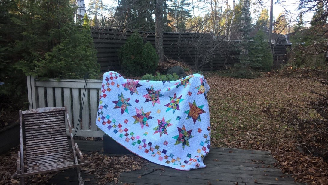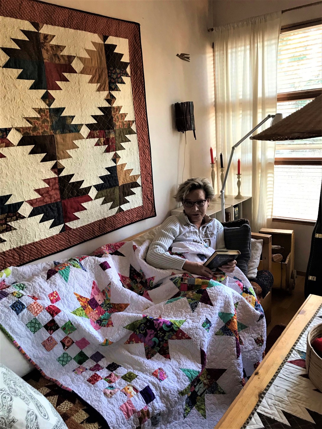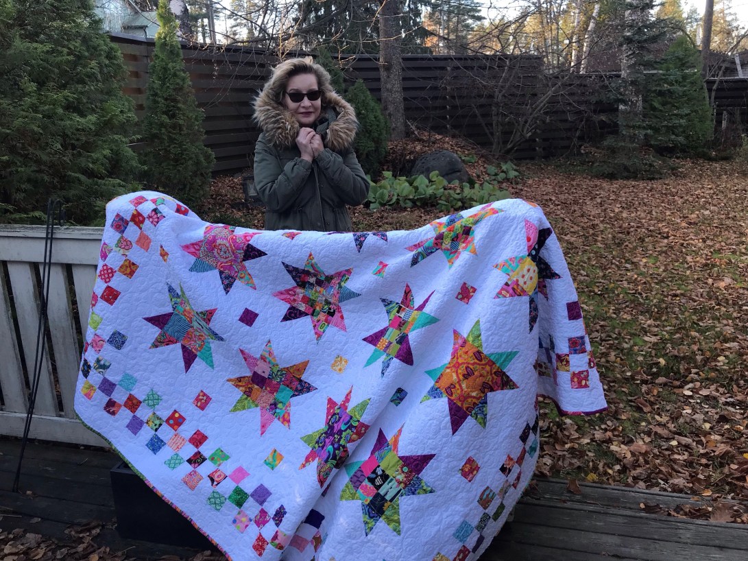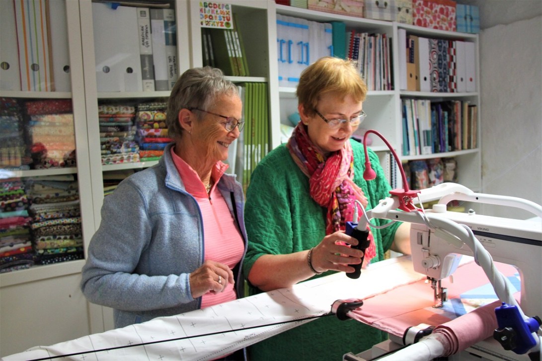 Vibeke was my first customer to have her quilt quilted by me here in Denmark, she brought along a giant quilt called Gravity, it was stunning! I have quilted many more quilts for Vibeke and more importantly she has used the midarm machine and frame to quilt many quilts herself for the charity she supports.